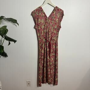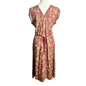 Vtg APRIL CORNELL Dress Women S Floral Beaded Midi Tie Back Boho Cottage Fairy