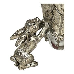 Vintage 90s ARTHUR COURT Cone Glass Vase with Aluminum Metal Bunny Rabbit Base Easter 2-piece set 9.5 tall 12-232