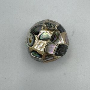 Vtg Abalone Shell Egg Mother Of Pearl Mosaic Iridescent Inlay Paperweight 2.5"T