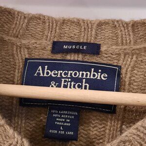 Vtg Abercrombie & Fitch Sweater Mens Large Tan Wool Fisherman Military Y2K 90s. Condition is pre-owned, sweater is gently used. Light material wear/pilling. Tag size Large, Muscle Fit, see photos for chest & length measurements. Thanks for taking a look!