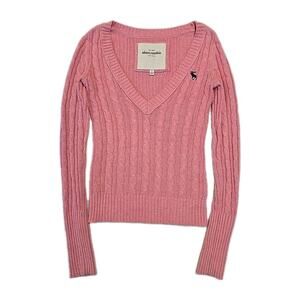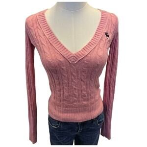 Vtg Abercrombie Fitch Y2K Cable-knit Rabbit Hair Sweater Sz L Pink V-neck Preppy