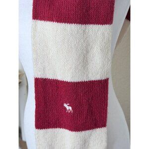 Vtg Abercrombie Scarf Moose Logo Wool Blend Red Striped Knit Winter