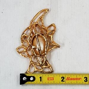 Vintage Abstract Gold Tone Brooch Pin 3.25 in.