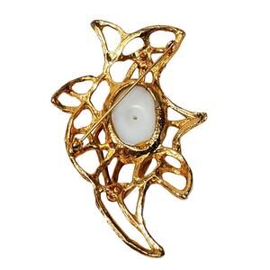 Vtg Abstract Gold Tone Brooch Pin 3.25"
