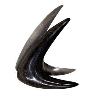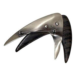 Vtg Abstract Modernist Brooch Pin Boomerang MCM Artistic Design 2.5" Silver Wood