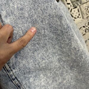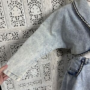Vtg Acid Wash Denim Cropped Jacket & Trumpet Skirt Set Sz Small