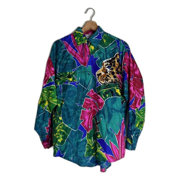 Great for collectors of vintage 90s fashion, animal print lovers, or anyone looking for an eye-catching silk shirt
