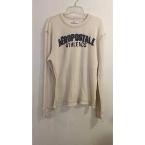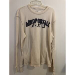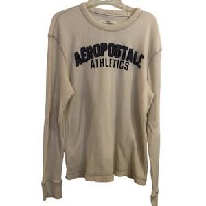 Vtg Aeropostale Sweater Mens XL Cream Spellout Waffle Knit Long Sleeve Y2K Heavy
