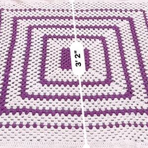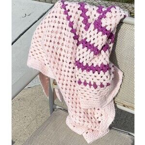 Vtg Afghan Granny Square Blanket 3’x5’ 70s Crocheted Cottagecore Pink Purple