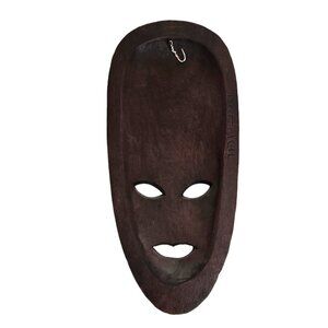 Vtg African Tribal Face Masks Wood Carved Wall Hang Tiki Signed M. Paul 10"