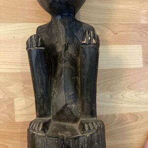 Vtg African Tribal Wood Hand Carved Primitive Statue Seated Figure Rope Hat