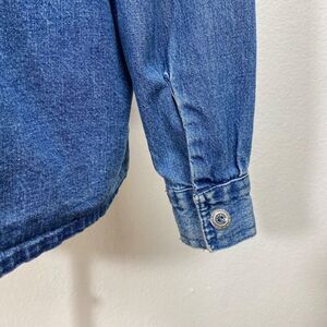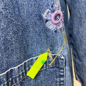 Vtg Agapo Chore Jacket Blouse Top Large Petite Denim Floral Embroidery Country