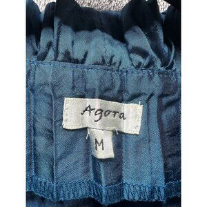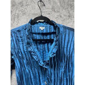 Vtg Agora Y2K Whimsigoth Crinkle Ruffle Blouse Top Women’s Medium Romantic Blue