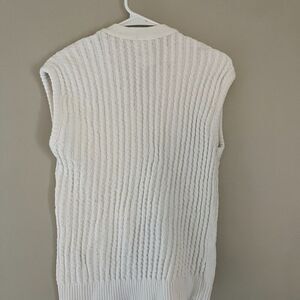 Vtg Aileen Womens White Cardigan Sweater Vest XL Ribbed Knit Argyle Golf Preppy
