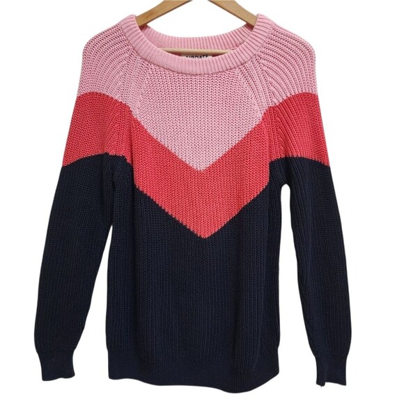 Vtg Airdate Amsterdam Sweater Women Size S Pink Navy Cotton Chevron Colorblock Knit Oversized Pullover Casual Cozy Warm Travel