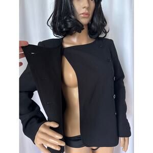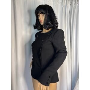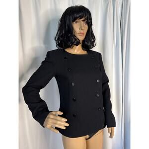 Vtg Albert Nipon pure wool black double breasted military style blazer Small
