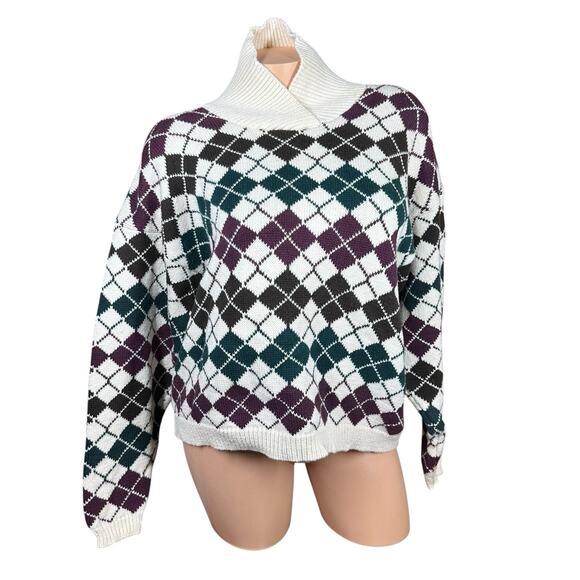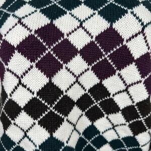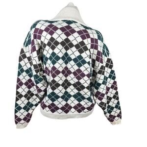 Vintage Alcott & Andrews Shawl Collar Women's 100% Combed Cotton Argyle Sweater Warm 1980s White Green Plum Black