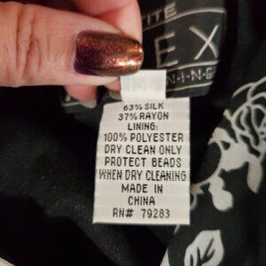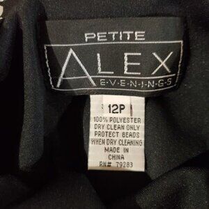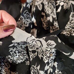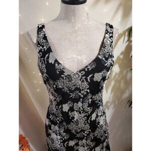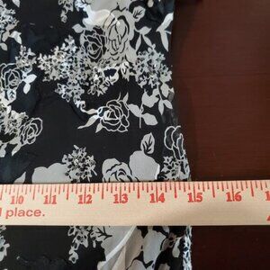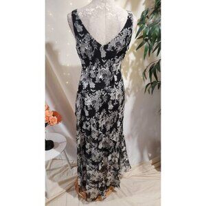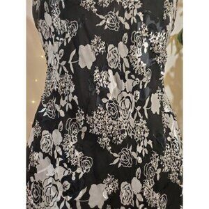Vtg 90s y2k Alex Evenings Floral Rose Silk Blend Sheer Ruffle Beaded Sequin Midi Dress Size 12P Black White