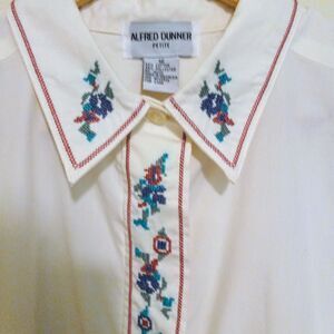 Vtg Alfred Dunner Floral Cross Stitch Button Up Blouse-Sz 16 Petite-Embroidered