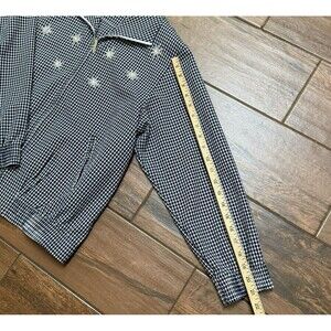 Vtg Alfred Dunner PETITE Blue Gingham Checked Jacket Embroidered Flowers Sz 10P