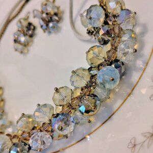 Vtg Ali-Khan New York Multi-Color Faceted AB Crystal Necklace & Earrings Set