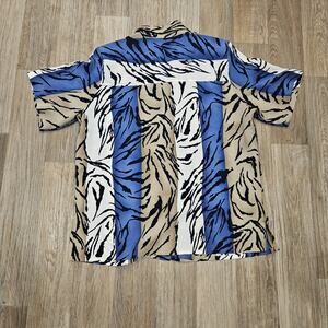 Vtg Alia Zebra Print Blouse Womens 6 Colorblock Retro Wearable Art Blue Beige