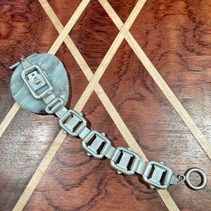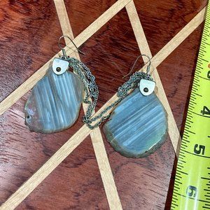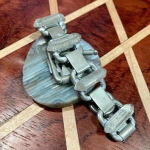Like-new vintage rare All Saints avant garde statement Xenolith Obelisk jewelry set. Chunky geometric cuff w four quartz points and blue-gray agate slice, with matching agate slice earrings w silver tone chains. Like-new condition, no tags. Also have another vintage AS jewelry piece in my listings.
