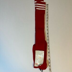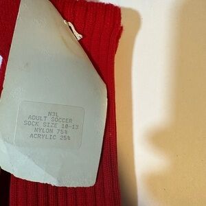 New old stock. No flaws or stains noted. Adult/men’s size 10-13. Red with a white stripe. One pair is missing the cardboard hangtag. There are 4 pairs available to purchase. Please see photos for details and measurements.