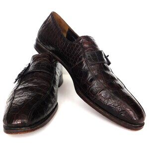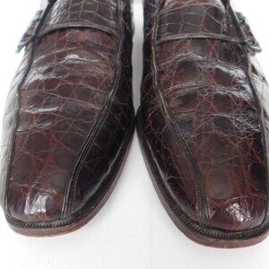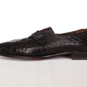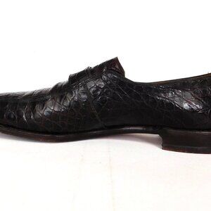 Vintage men's slip on dark brown alligator shoes with elongated toe and probably would fit a narrow foot better