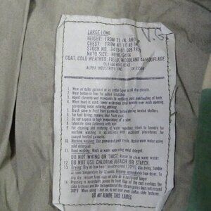 Vtg Alpha Industries US Army Camouflage Cold Weather Field Coat Men Size L LONG