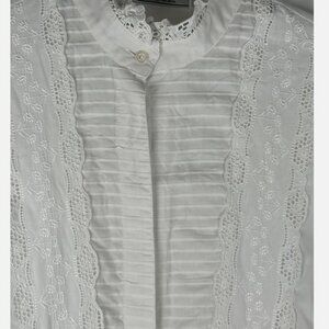 Vintage Alphorn Trachten White Eyelet Button Front Blouse