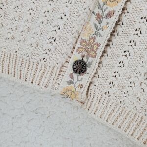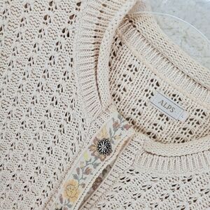 Vtg Alps Cardigan Sweater L Ivory Cotton Grandmacore Button-Up Needlepoint 80s