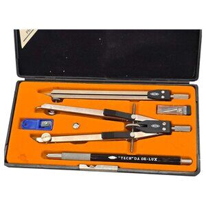 Durable drafting set crafted for precision and reliability. Includes compasses, cleaning cloth, and storage case, ideal for engineering, drafting, or graphic arts.