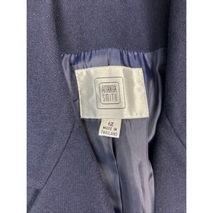 Vtg Amanda Smith Womens Size 12 Wool Blazer Navy Blue Dbl Breasted Lined Classic