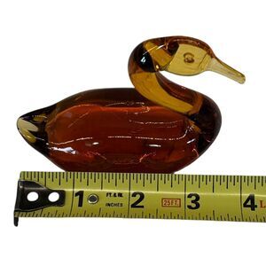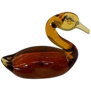 Vtg Amber Swan Duck Figurine MCM Art Glass Goose Paperweight Size 4" Gift