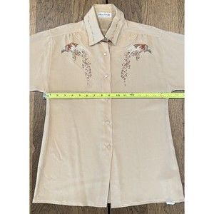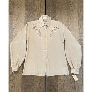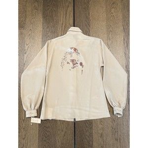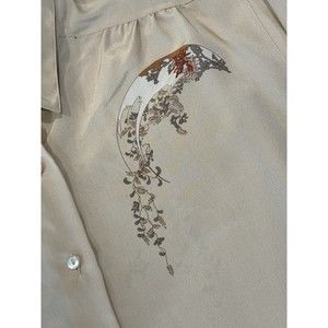 Vtg Amen Wardy Newport Beach Button Up Blouse Women’s 40/M Beige Graphic Print