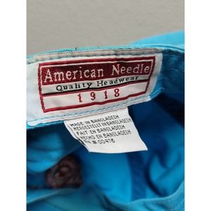 Good Condition. Has some light yellowing on bottom left. See pics. Sky blue/red..adjustable, embroidered