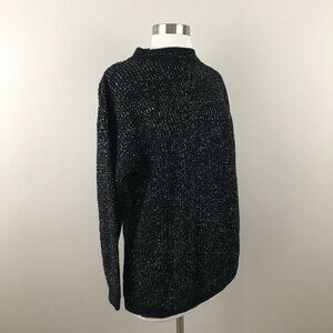 Vtg American Pride Sweater Black Silver Tensil Long Sleeve