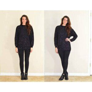 Fun sweater. Has silver tensil to liven up just a simple black sweater. Adds a little flair! Crewneck. Long sleeves.