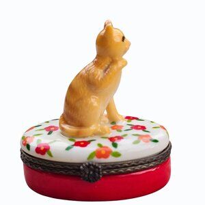 Vtg American Short Hair Orange Cat Porcelain Hinged Trinket Box 2.75" x 2.25"