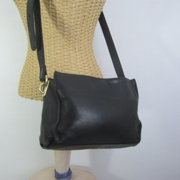 Vtg Americana By Sharif Black Glove Leather Shoulder Cross Body Bag Minimalist Soft