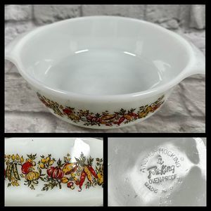 Milk glass with veggie pattern on this Anchor Hocking baking dish. Perfect for use at your Easter table this year!