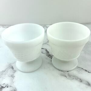 Vtg Anchor Hocking Milk Glass Grape Leaf Retro Mid Century Desert Cups Set of 2