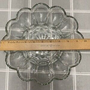 Vtg Anchor Hocking Prescut Clear Glass Holds 12 Deviled Eggs Relish Tray Platter