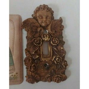Vtg Angel Light Switch Plate Cover Lot of 3 Cherub Garden 3D Metal