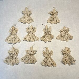 Vintage lot of 10 starched crochet angel ornaments.