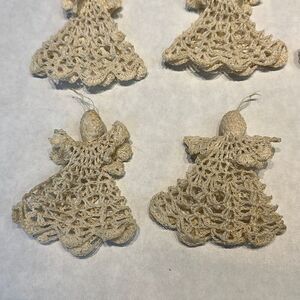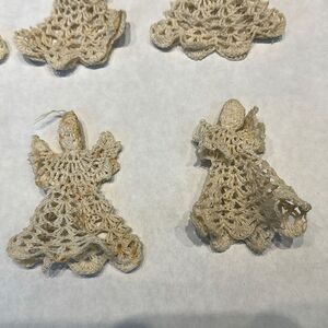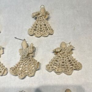 Vtg Angel Ornament Starched Crochet Cream Beige Off White Set Lot 10 Crocheted