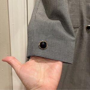 Vtg Angelica Midi Blazer Size 12 Black White Double Breasted USA Old
