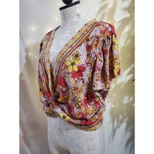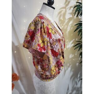 Vtg Angie Paisley Floral Twist Front Flutter Sleeve Crop Top Womens Plus Size 2X