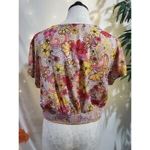 Vtg 90s Y2K Angie Paisley Retro Floral Twist Front Flutter Sleeve Crop Top Womens Plus Size 2X